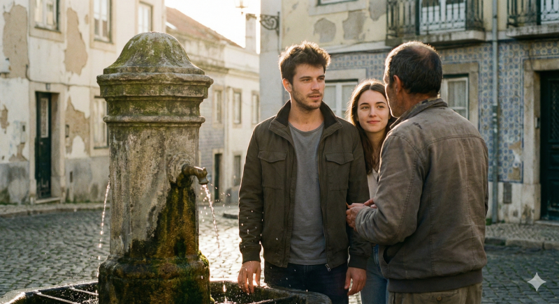 O bairro onde Samira vivia era atravessado por uma rotina previsível: autocarros cheios, cafés ruidosos, gente cansada. No centro, quase esquecido, havia um chafariz antigo onde a água corria com uma fidelidade silenciosa. Samuel começou a acompanhar Samira naquele pequeno ritual matinal.